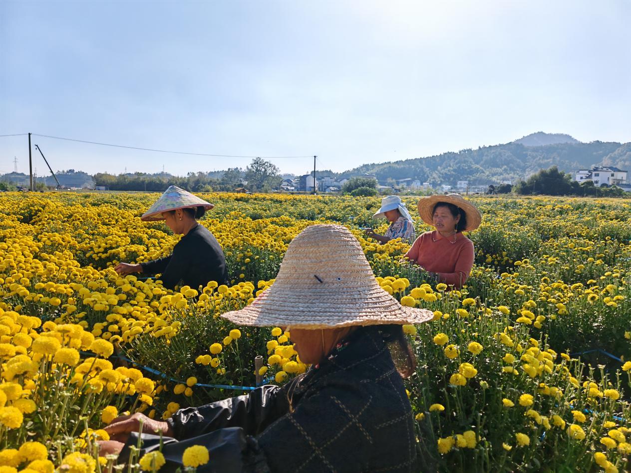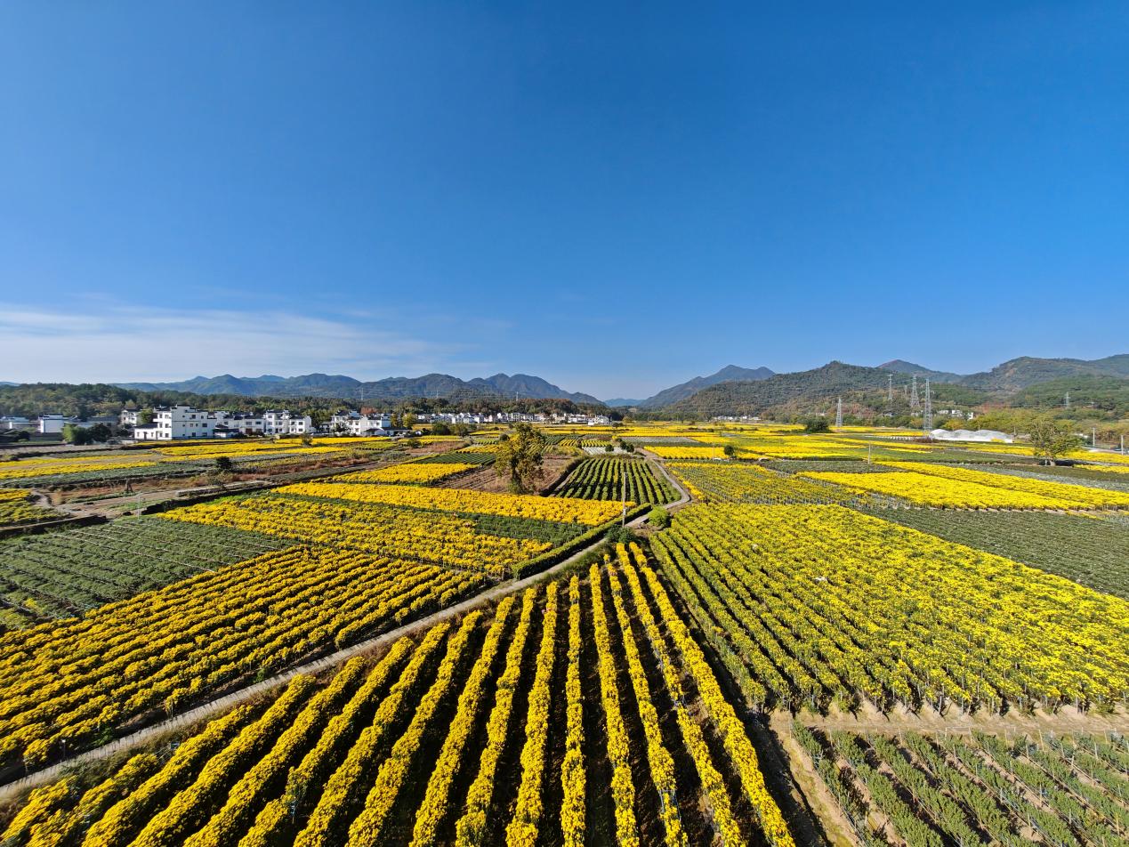 一花引領,全域芬芳。如今,菊花種植產業已從鹽鋪村輻射至齊云山、萬安、藍田、源芳等多個鄉鎮。休寧縣依托優質鄉村旅游資源,引導企業延伸產業鏈條,大力發展菊花深加工,不斷提升產品附加值,走出一條農文旅深度融合的特色發展之路。據統計,今年全縣菊花種植面積達1.81萬畝,年產值突破2.3億元。